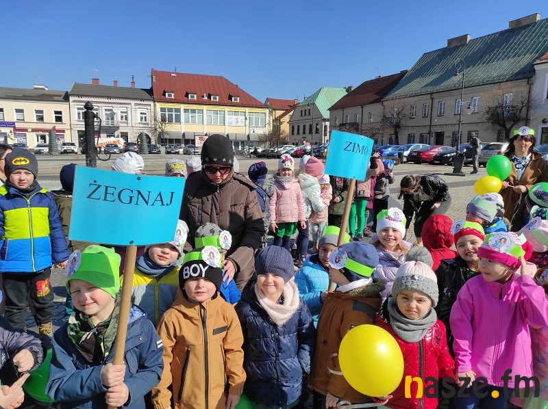 Takim wesołym hasłem dzieci przywitały wiosnę. Przedszkolaki z oddziałów przedszkolnych Szkoły Podstawowej nr 1 w Sieradzu wybrały się na wiosenny spacer z Marzanną, żeby przywołać wiosnę a pożegnać zimę.