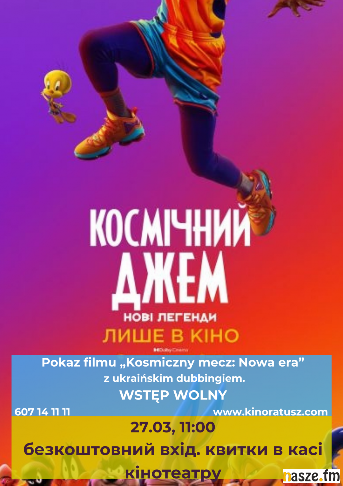 Kino Ratusz w Zduńskiej Woli zaprasza dzieci i młodzież z Ukrainy na specjalny pokaz filmu. W ukraińskim dubbingiem zobaczyć będzie można "Kosmiczny mecz: Nowa era".