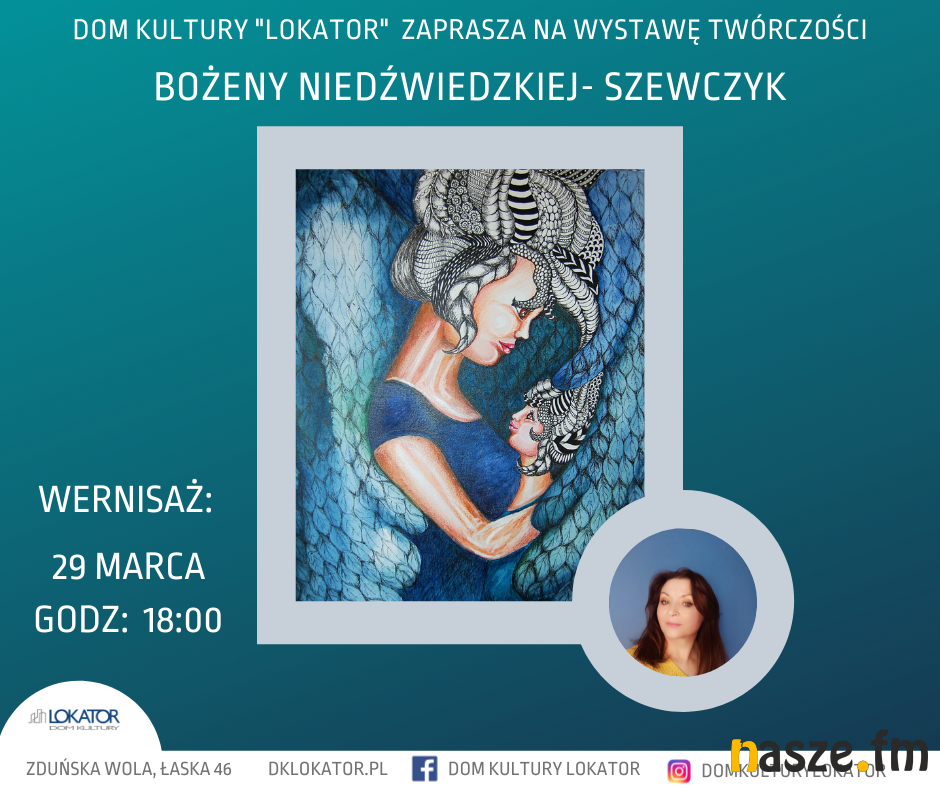 Dom Kultury Lokator w Zduńskiej Woli wraz zaprasza na wernisaż wystawy twórczości Bożeny Niedźwiedzkiej- Szewczyk. Wydarzenie zaplanowano na wtorek, 29 marca.