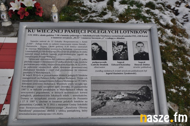 Niestety w wyniku ostrzału samolotu niemieckiej OPL, polska maszyna rozbiła przy próbie awaryjnego lądowania na polach osady Prusak nieopodal Walichnów. Lotnicy: ppor. obs. Ludwik Dembek, oraz kpr. strz. sam. Henryk Dubisz spłonęli we wraku maszyny. Pilot kpr. Edward Kościelny w opalonym kombinezonie wypadł z samolotu w momencie zderzenia z ziemią co utrwalono na archiwalnej fotografii.