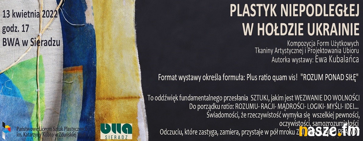 Dziś w Galerii na Piętrze w Biurze Wystaw Artystycznych w Sieradzu o godz. 17:00 zostanie otwarta wystawa tkaniny artystycznej. Zobaczymy na niej prace młodzieży Państwowego Liceum Sztuk Plastycznych w Zduńskiej Woli. Ekspozycja nawiązuje do wojny w Ukrainie.