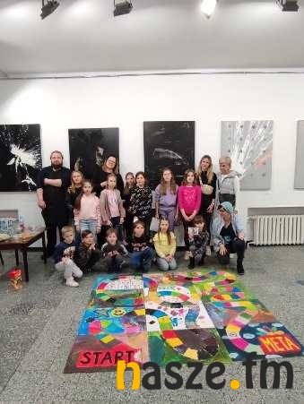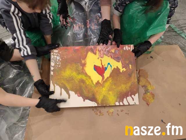 Zadaniem uczestników warsztatów było pomalowanie elementów gry planszowej, a także wykonanie prac plastycznych metodą pouringu.