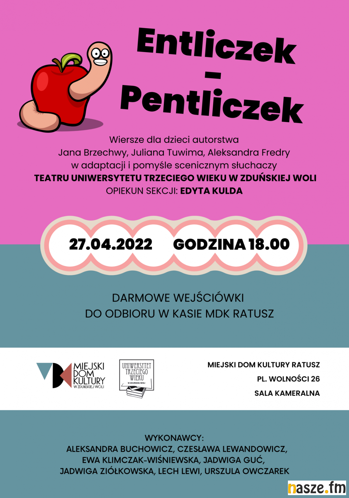 Spektakl "Entliczek-Pentliczek" odbędzie się 27 kwietnia o godzinie 18.00 w sali kameralnej MDK Ratusz.