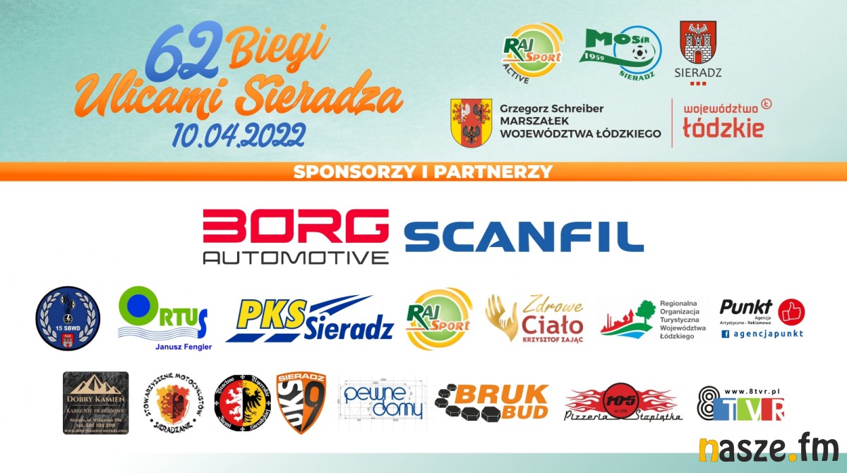 62. Biegi Ulicami Sieradza przeszły do historii. W niedzielnych zawodach mimo niesprzyjającej aury zawodnicy z całej Polski tłumnie stawili się na starcie, zapewniając rekordową frekwencję. 554 uczestników z całej Polski walczyło w biegu głównym na 10 km oraz towarzyszącym BORG Run na 5km , a także rodzinnym Scanfil Kids run.