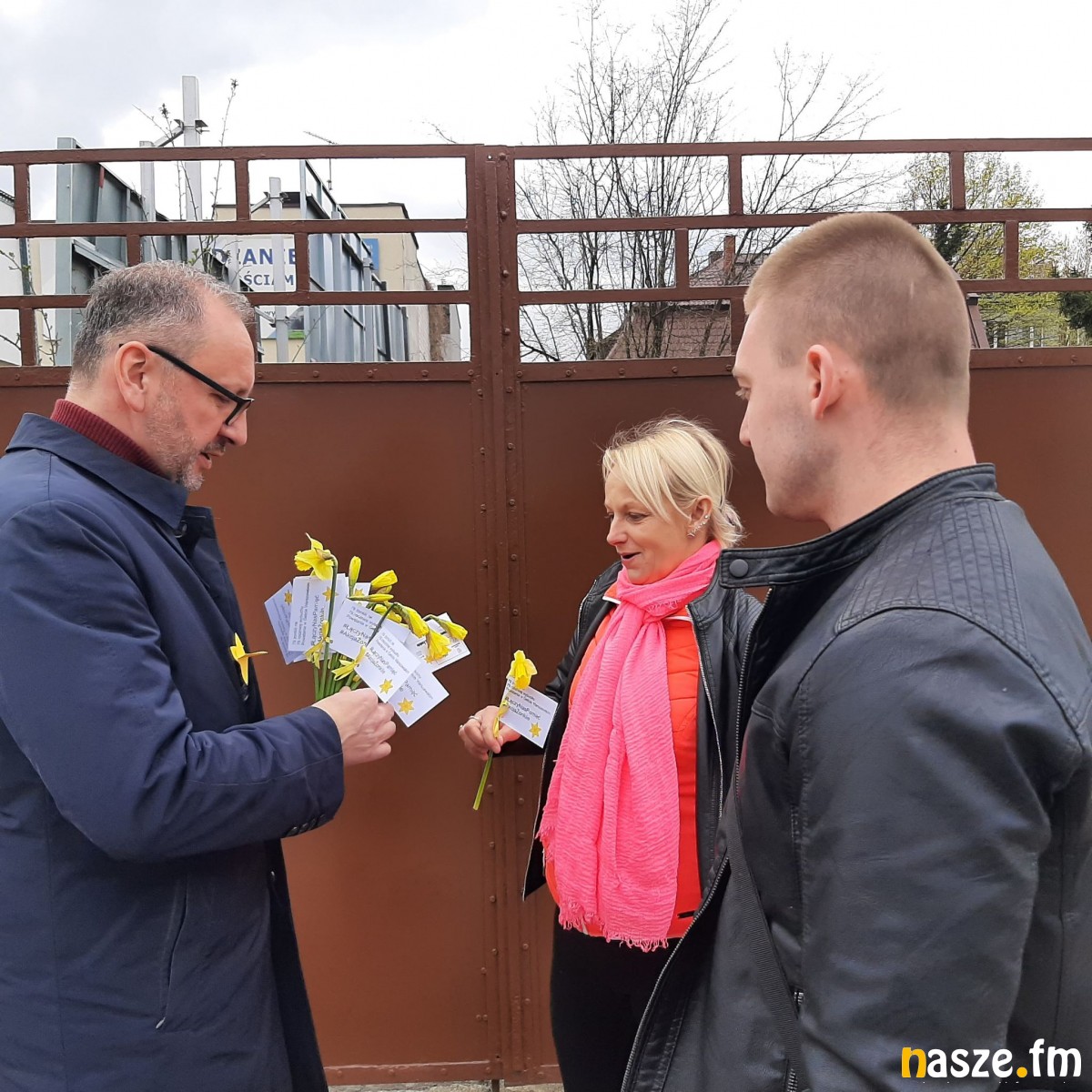 W Zduńskiej Woli przy ul. Łaskiej wolontariusze, wspólnie z prezydentem Konradem Pokorą oraz wicestarostą zduńskowolskim Wojciechem Rychlikiem rozdawali przechodniom żonkile.