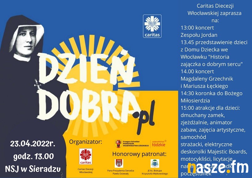 Z taką inicjatywą, żeby takim dniem była najbliższa sobota, wyszedł Caritas. Organizowane w tym dniu pikniki, warsztaty, pokazy, biegi i koncerty będą okazją, żeby pokazać, jak dużo dobra dzięki wolontariuszom wydarza się na co dzień. Caritas Diecezji Włocławskiej, zaprasza na os. Jaworowe w Sieradzu, początek o godz. 13:00