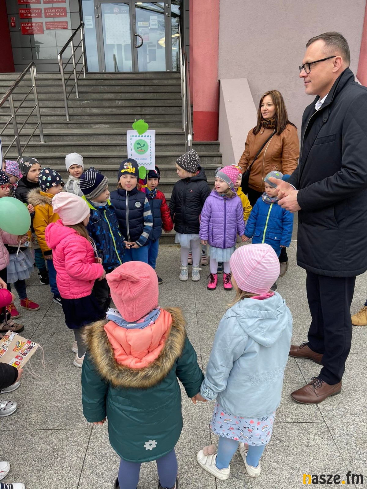 Ulicami Sieradza przeszedł barwny pochód przedszkolaków z proekologicznymi transparentami. Dzieci rozdawały przechodniom własnoręcznie wykonane listki z hasłami nawołującymi do dbania o Ziemię. Następnie spotkały się z prezydentem Sieradza Pawłem Osiewałą oraz dyrektorką SP 1 w Sieradzu Beatą Adamiak. Dzieci wręczyły im pamiątkowe Certyfikaty Pomocników Ziemi. Odśpiewano też hymn Eko-Przedszkolaka, do którego słowa napisała pani Alicja Mroziak.