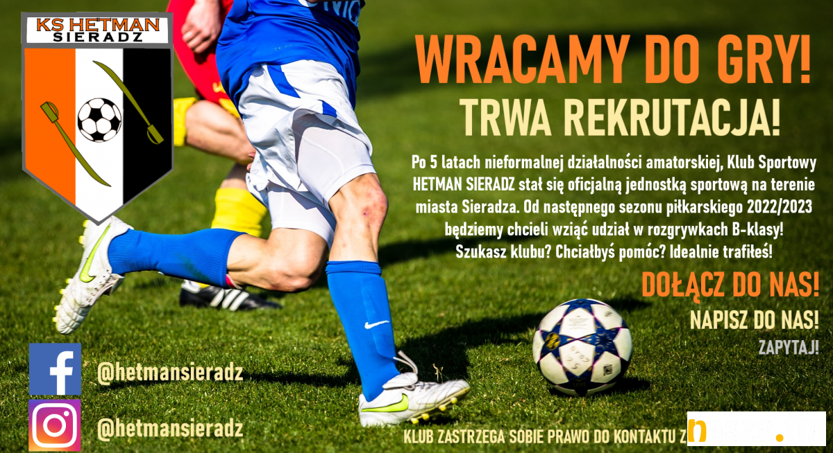 Nowo powstały klub piłkarski z naszego regionu Hetman Sieradz prowadzi nabór do drużyny. W przyszłym sezonie klub wystartuje w rozgrywkach klasy B.