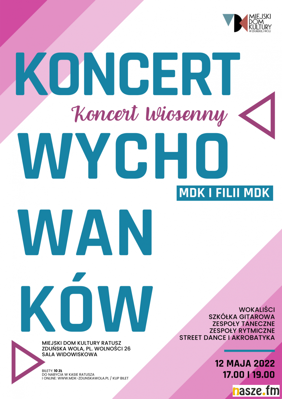 Dwa koncerty wychowanków domu kultury odbędą się 12 maja o godzinie 17.00 i 19.00. Bilety na koncerty w cenie 10 zł są do nabycia w kasie kinowej oraz online.