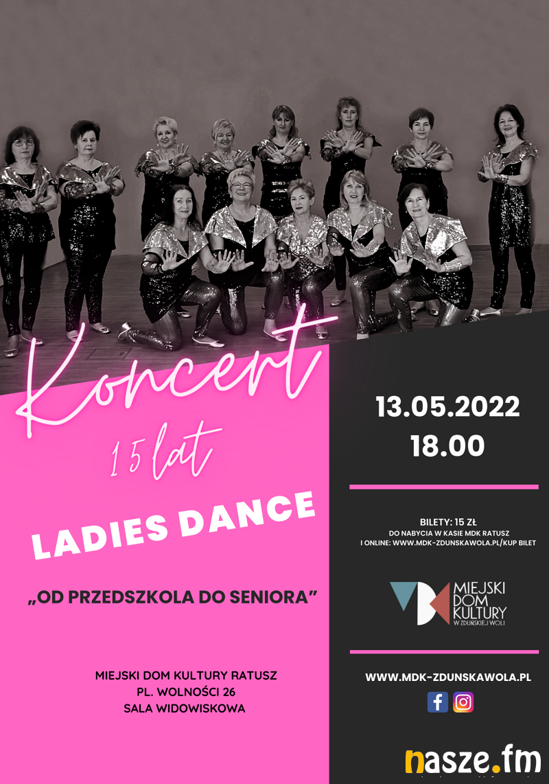 15-lecie istnienie w tym roku świętuje Formacja Taneczna "Ladies Dance". Z tej okazji, zespół, działający pod opieką instruktorki Lubomiły Chmielewskiej-Szymczak, zabierze wszystkich do krainy nostalgii. Jubileuszowy koncert odbędzie się w piątek, 13 maja w Centrum Integracji Ratusz w Zduńskiej Woli.