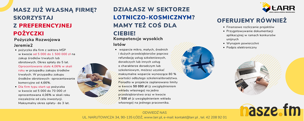 Całą ofertę instrumentów finansowych Łódzkiej Agencji Rozwoju Regionalnego można zobaczyć na stronie larr.pl w sekcji "Pożyczki i usługi dla biznesu".