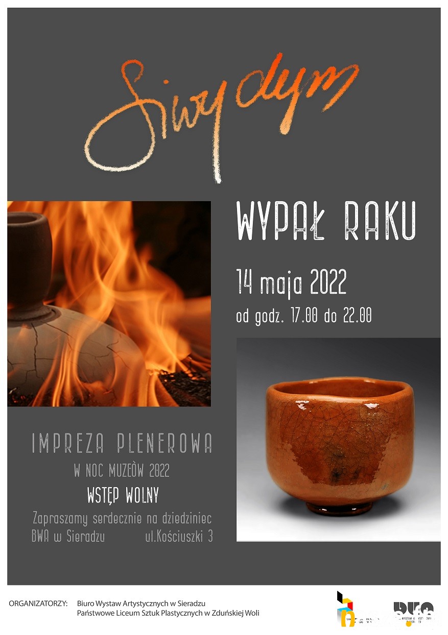 W galerii przy ul. Kościuszki w Sieradzu będzie można oglądać wystawy i wziąć udział w wydarzeniu plenerowym na dziedzińcu BWA. Tu zaplanowano wypał metodą raku. Galeria będzie czynna od 16:00 do 22:00.