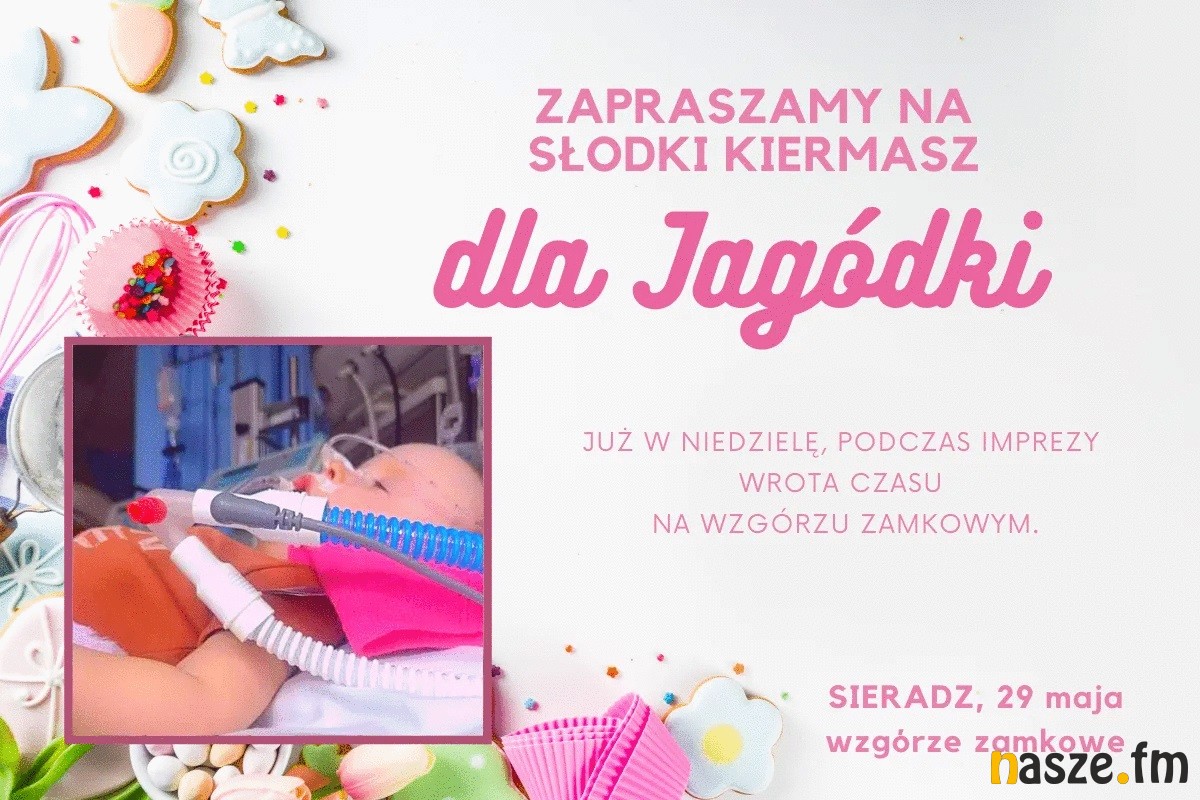 W niedzielę 29 maja odbędą się kolejne wydarzenia, które mają pomóc w zebraniu pieniędzy na leczenie Jagody Michalak. W Błaszkach na placu przed Błaszkowianką o godz. 7:00 rozpocznie się kiermasz ciast i zabawek. Ciasta i zdrowe chlebki będzie się też można kupić na Wzgórzu Zamkowym w Sieradzu i w ten sposób pomóc dziewczynce.