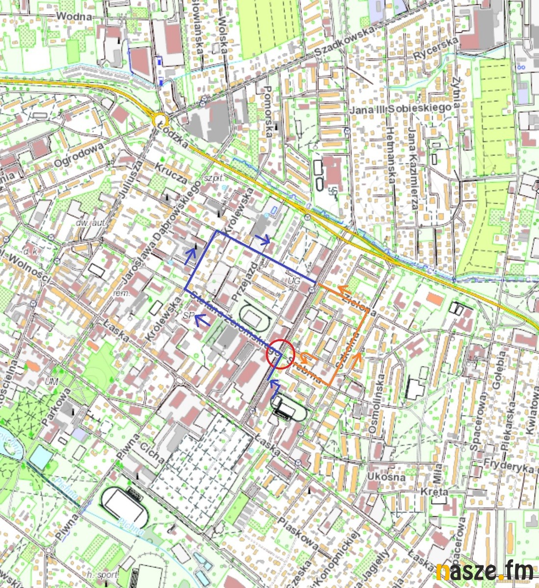 Poniżej mapa z wyznaczonymi objazdami.