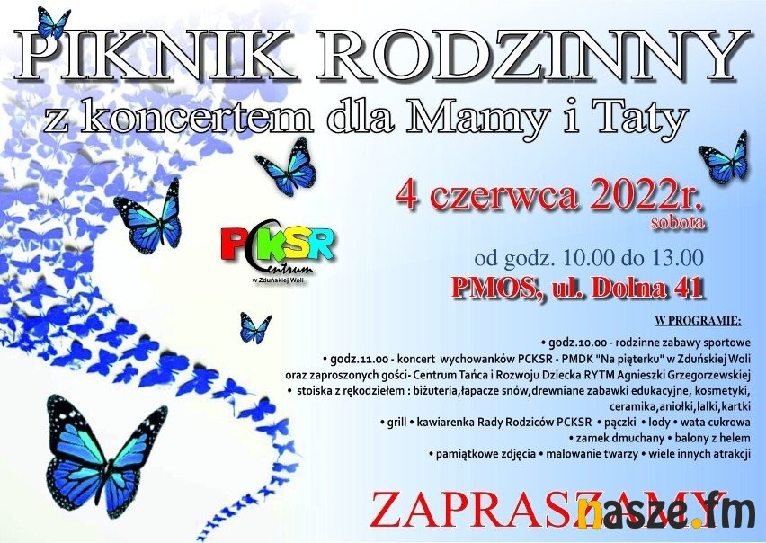 W sobotę atrakcję będą też na terenie PMOS przy ul. Dolnej 41, odbędzie się tam Piknik Rodzinny. Będzie koncert wychowanków Domu Kultury na „Na pięterku” oraz zaproszonych gości z Centrum Tańca i Rozwoju Dziecka „Rytm”. Przygotowano mnóstwo atrakcji, m.in. rodzinne zabawy sportowe, zamek dmuchany, balony z helem, pamiątkowe zdjęcia, malowanie twarzy, stoiska z rękodziełem: biżuteria, łapacze snów, drewniane zabawki edukacyjne, kosmetyki, ceramika, aniołki, lalki, kartki. Będzie też grill, kawiarenka Rady Rodziców PCKSR, pączki, lody, wata cukrowa.