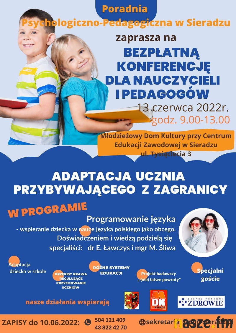 Na konferencję pod takim hasłem zaprasza Poradnia Psychologiczno- Pedagogiczna w Sieradzu. W programie m.in. wykład specjalistów dotyczący nauki języka polskiego jako obcego oraz emocjonalne aspekty adaptacji dzieci w nowej szkole. Konferencja jest skierowana do nauczycieli i pedagogów.