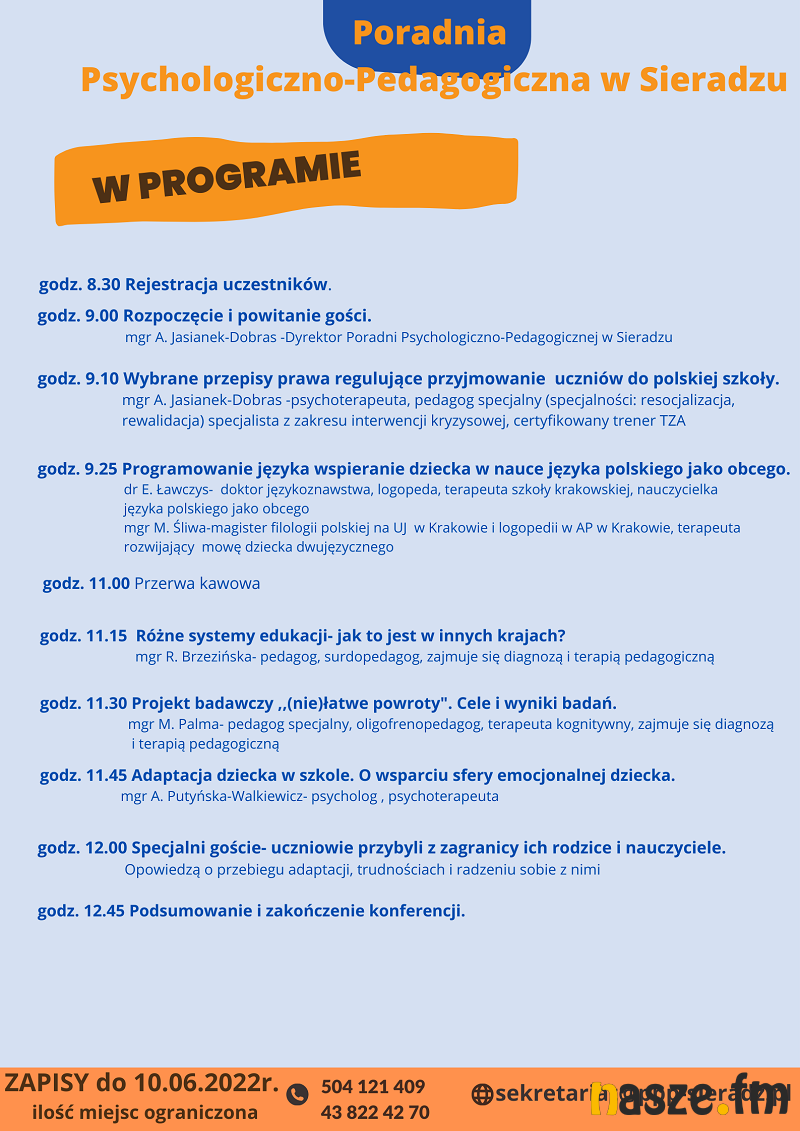 - Udział w konferencji jest bezpłatny. W programie m.in. wykład specjalistów dotyczący nauki języka polskiego jako obcego, przybliżenie systemów edukacyjnych innych krajów oraz emocjonalne aspekty adaptacji dzieci w nowej szkole. Goście z zagranicy przebywający w Polsce opowiedzą o swoich doświadczeniach- informują organizatorzy
