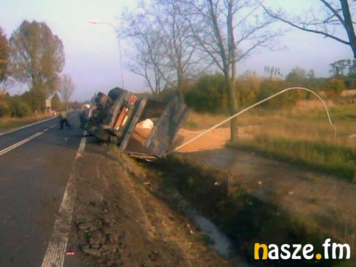 Kierowca ciężarówki miał już tylko kilka kilometrów do celu. Z Olesna w województwie opolskim wiózł 25 ton zboża do Zduńskiej Woli. Na trasie wiodącej do tego miasta z Sieradza z nieustalonych na razie przyczyn zjechał na pobocze i wpadł do głębokiego rowu.