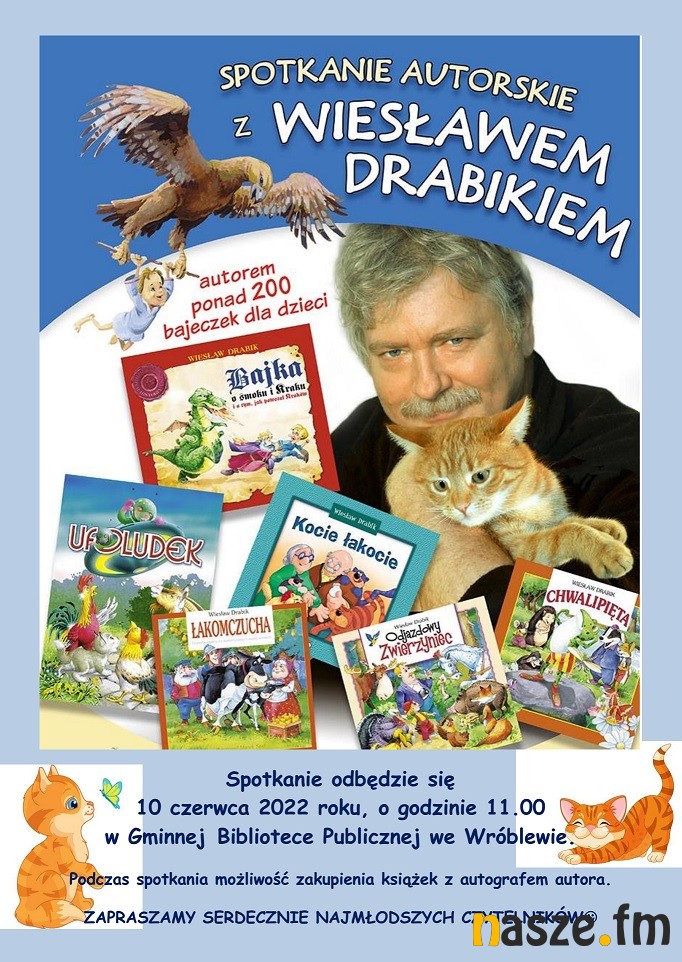 Gminna Biblioteka Publiczna we Wróblewie zaprasza jutro na spotkanie autorskie z Wiesławem Drabikiem pisarzem, ilustratorem, autorem książek dla dzieci. Początek o godz. 11:00, wstęp wolny.