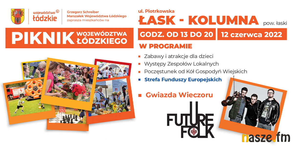 Natomiast piknik w Łasku Kolumnie odbędzie się w niedzielę, 12 czerwca, przy ul. Piotrkowskiej. Początek o godz. 12:00. Wydarzenie zakończy się występem zespołu Future Folk o godz. 19:00.