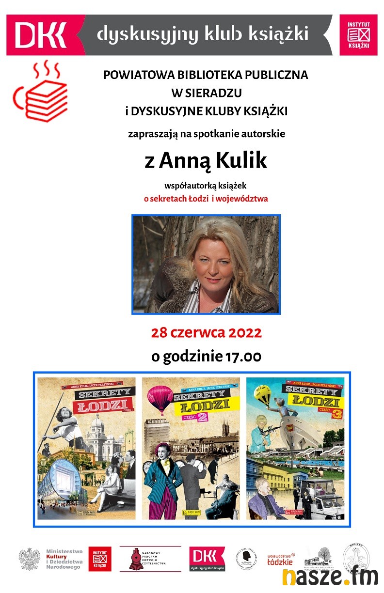 Spotkanie z współautorką serii książek o sekretach Łodzi i województwa łódzkiego rozpocznie się o godz. 17:00 w bibliotece powiatowej w Sieradzu. Anna Kulik opowie o stolicy województwa i przytoczy najciekawsze historie z regionu sieradzkiego. Opowieść wzbogacona zostanie prezentacją zdjęć.