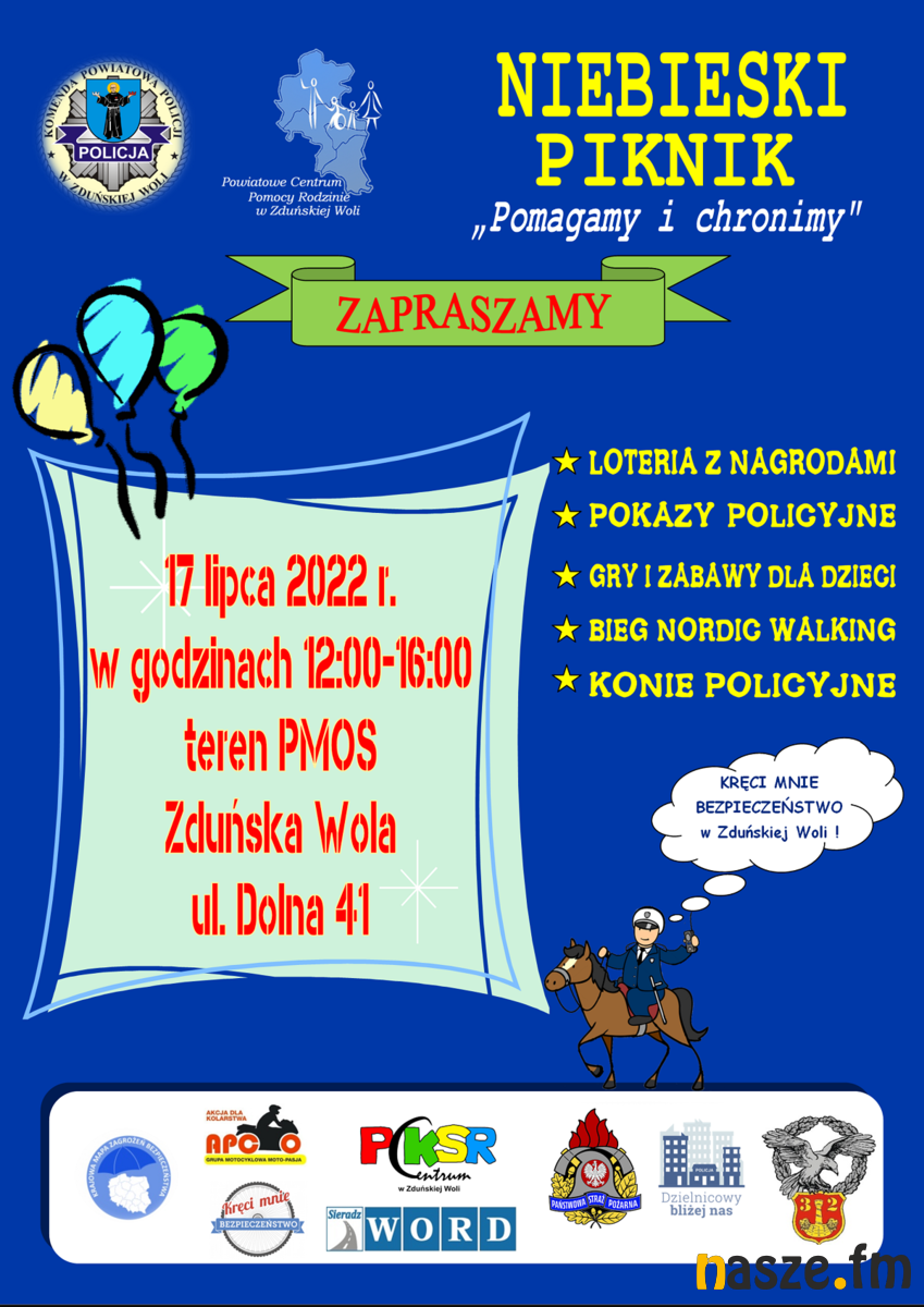 Przygotowany przez zduńskowolskich policjantów i pracowników Powiatowego Centrum Pomocy Rodzinie „Niebieski Piknik" odbędzie się w godzinach 12:00 - 16:00 na terenie Powiatowego Międzyszkolnego Ośrodka Sportowego przy ul. Dolnej 41 w Zduńskiej Woli.