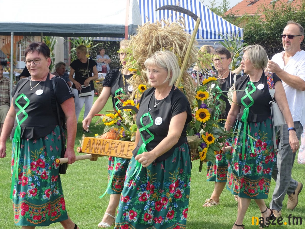 Zabawę dożynkową poprzedziła prezentacja wieńców przygotowanych przez poszczególne sołectwa, polowa msza święta i część obrzędowa z dzieleniem chlebem.