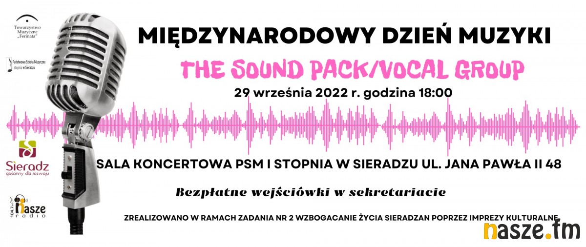 Zbliża się Międzynarodowy Dzień Muzyki. Z tej okazji w sali koncertowej Państwowej Szkoły Muzycznej I st. w Sieradzu odbędzie się koncert. W czwartek 29 września wystąpi kwartet wokalny "The Sound Pack".