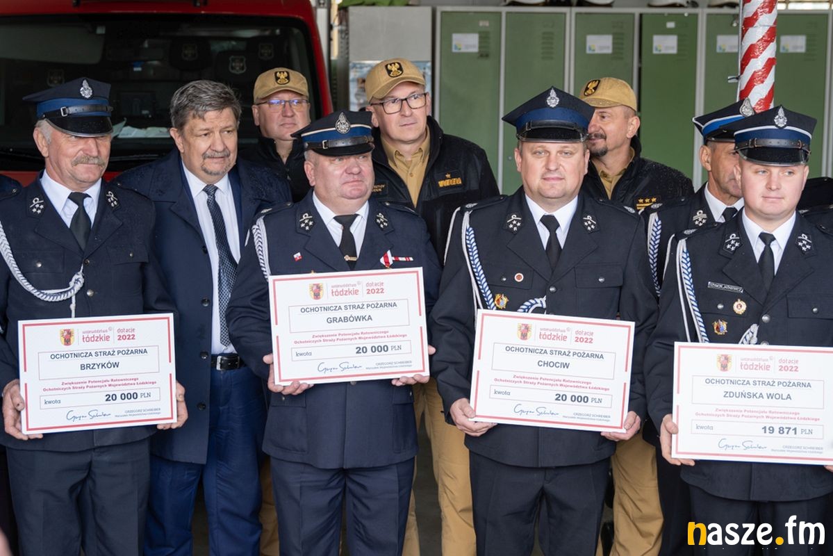 - Jako samorząd województwa chcemy być bliżej was, chcemy, żebyście wiedzieli, że macie w nas partnera - podkreślił Grzegorz Schreiber, marszałek województwa łódzkiego podczas uroczystości przekazania czeków. Zainteresowanie konkursem było tak duże, że sejmik podwoił kwotę dotacji z 1,5 do 3 mln zł. Wnioski złożyło 385 straży, co jak przypomniał marszałek bardzo dużo mówi o konieczności doposażania strażaków-ochotników.