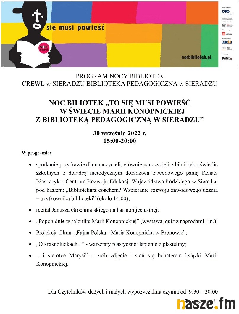 Czytelników w sobotę 1 października zaprasza też Powiatowa Biblioteka Publiczna w Sieradzu.