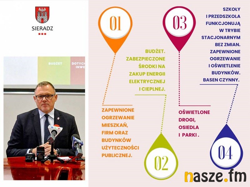 Dziś na spotkaniu z lokalnymi mediami prezydent Sieradza Paweł Osiewała przedstawił sytuację dotyczącą przygotowania miasta w związku z trudną sytuacją na rynku energetycznym. Prezydent uspokajał mieszkańców mówiąc, że stabilne funkcjonowanie usług publicznych w Sieradzu nie jest zagrożone.