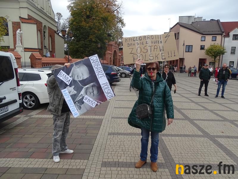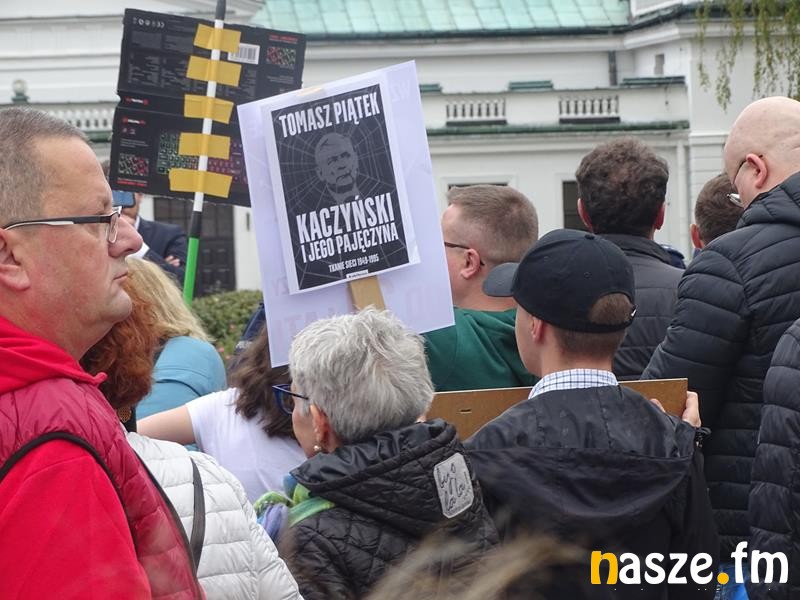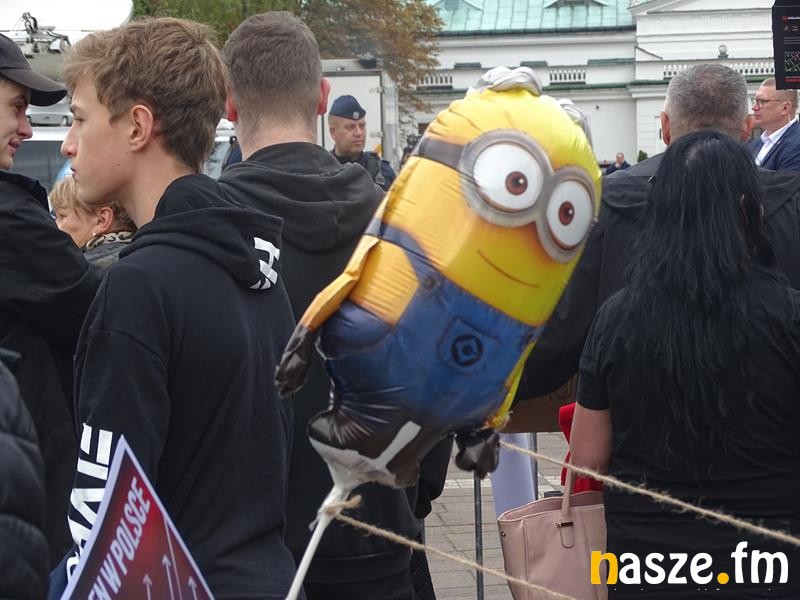 Przed teatrem zebrali się przeciwnicy polityki Prawa i Sprawiedliwości, którzy manifestacyjnie wyrażali swoje niezadowalanie z aktualnej sytuacji w kraju.