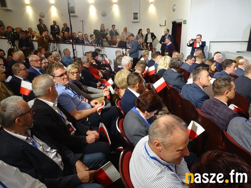 Pojawili się politycy PiS, wśród nich europoseł Ryszard Czarnecki. Był też prezydent Sieradza Paweł Osiewała, a wejście Kaczyńskiego zapowiedział marszałek województwa łódzkiego Grzegorz Schreiber. Zanim prezes PiS wszedł na scenę, to odegrano jeszcze hymn państwowy. Kaczyński dużo uwagi poświęcił polityce Niemiec i Unii Europejskiej: