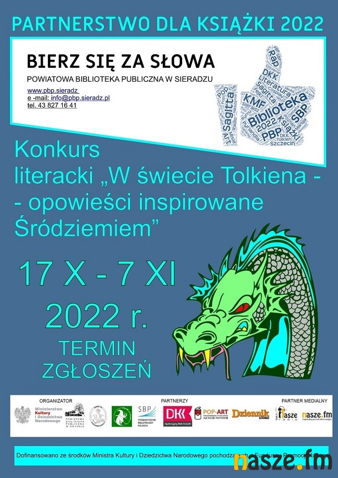 Powiatowa Biblioteka Publiczna w Sieradzu zaprasza do udziału w konkursie literackim "W świecie Tolkiena - opowieści inspirowane Śródziemiem". Konkurs skierowany jest do wszystkich osób zainteresowanych tą tematyką, a zostanie przeprowadzony w dwóch kategoriach wiekowych 14-18 lat i dla osób dorosłych.