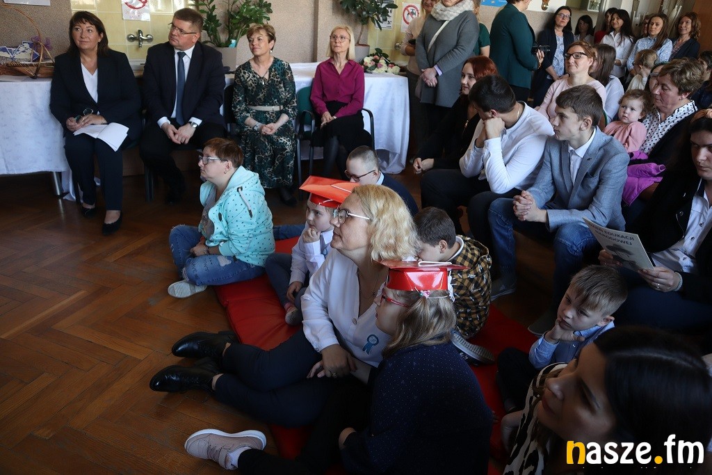 - Następnie wszyscy wzięli udział w uroczystym apelu z okazji Dnia Edukacji Narodowej. Były występy, podziękowania i kwiaty, Ważnym punktem uroczystości było ślubowanie pierwszoklasistów, którego dokonał sam minister. Miłą niespodzianką był tort od rodziców dla wszystkich pracowników naszej szkoły. Na koniec odbyła się wspólna sesja zdjęciowa z zaproszonymi gośćmi - relacjonują pracownicy ZSS w Warcie.