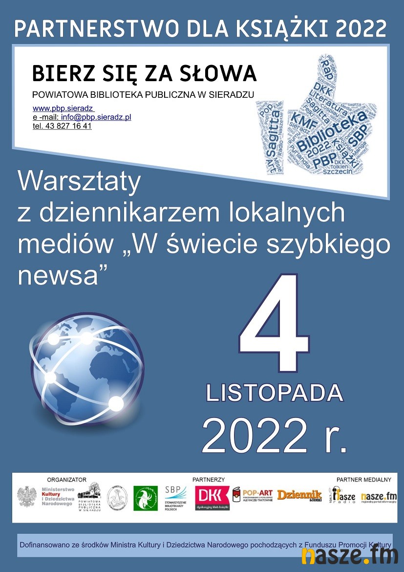 Z kolei w piątek 4 listopada, również na godz. 10:00 i 11:00 w bibliotece powiatowej zaplanowano warsztaty z dziennikarzem lokalnych mediów „W świecie szybkiego newsa”. Do udziału w tych zajęciach biblioteka przy ul. Żwirki i Wigury w Sieradzu zaprasza wspólnie z redakcją Dziennika Łódzkiego i tygodnika Nad Wartą Sieradz.