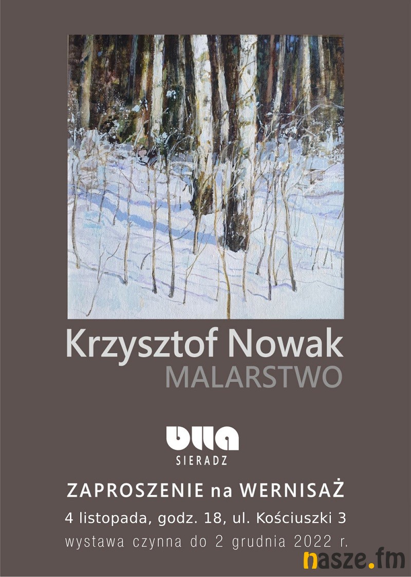 Biuro Wystaw Artystycznych w Sieradzu zaprasza w najbliższy piątek na otwarcie wystawy malarstwa Krzysztofa Nowaka. W swoim dorobku artystycznym posiada kilkanaście wystaw indywidualnych i ponad 70 wystaw zbiorowych. Otwarcie wystawy o godzinie 18.