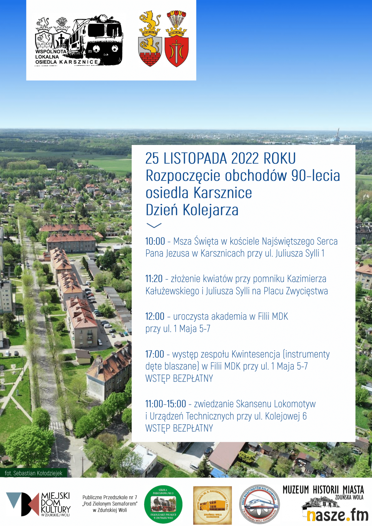 90-lecie os. Karsznice połączone będzie z Dniem Kolejarza. O godz. 17:00 koncert da zespół Kwintesencja, którego członkowie grają na instrumentach dętych blaszanych. Ponadto tego dnia bezpłatnie zwiedzać będzie można Skansen Lokomotyw i Urządzeń Technicznych przy ul. Kolejowej 5. Będzie można to zrobić w godz. 11:00-15:00.