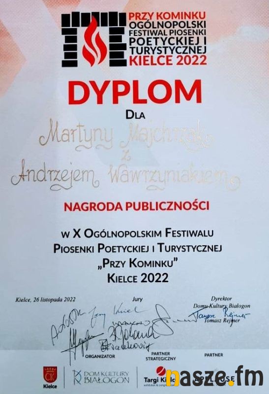 X Ogólnopolski Festiwal Piosenki Poetyckiej i Turystycznej - Kielce 2022 z nagrodami. Martyna Majchrzak i Andrzej Wawrzyniak wrócili z Kielc ze sporą ilością nagród.