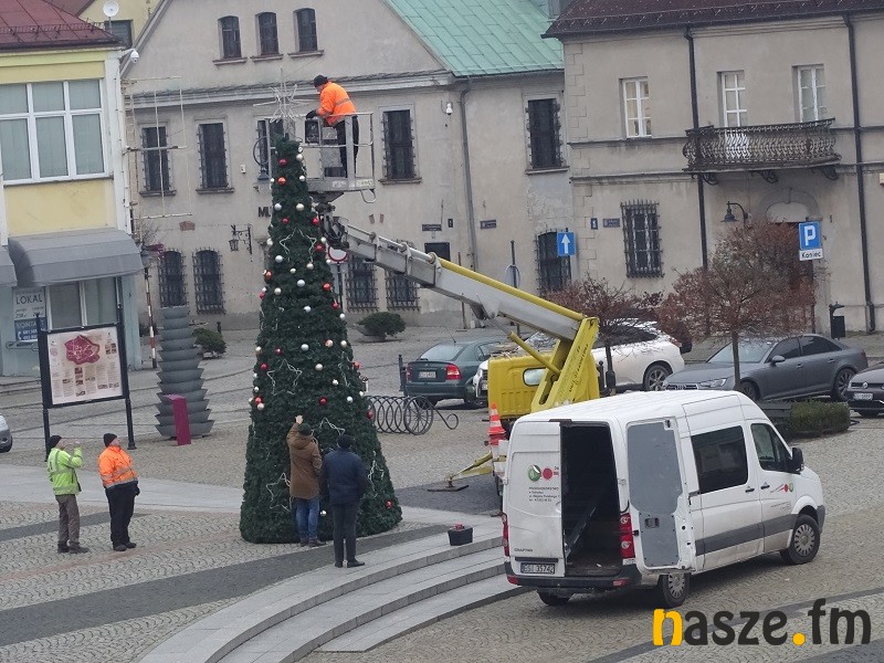 Choinka na rynku w Sieradzu to już długa tradycja. Żywe drzewko zastąpiono jednak sztucznym. Dziś ustawiali je od rana pracownicy Przedsiębiorstwa Komunalnego w Sieradzu.