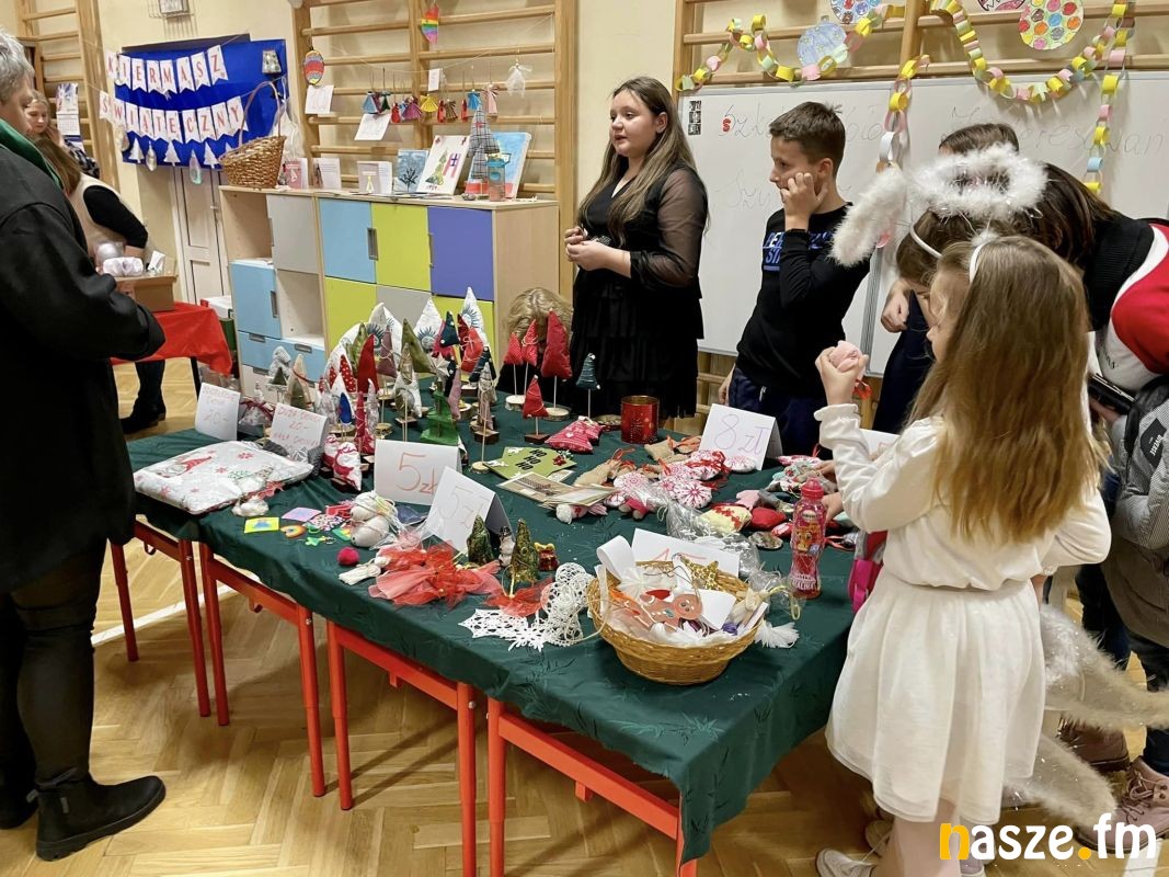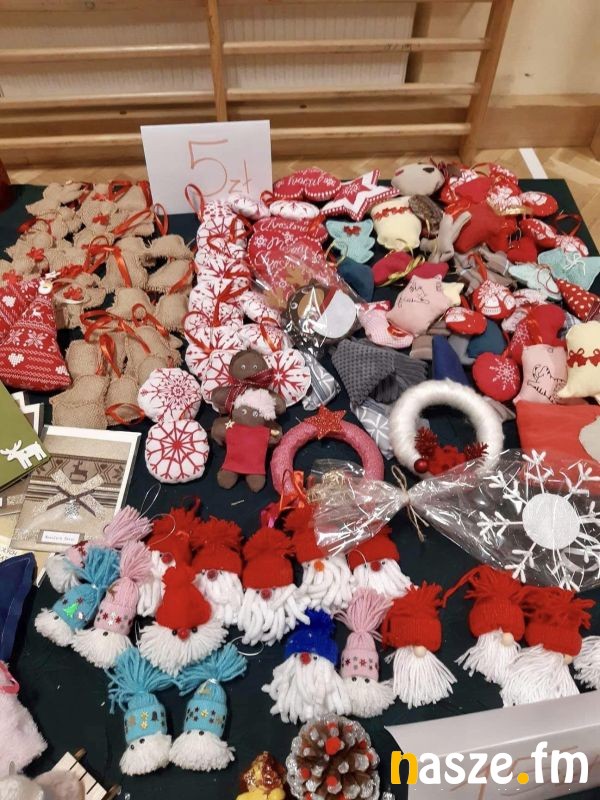 Na Kiermaszu kupić można było rękodzielnicze dzieła uczniów szkoły: stroiki, bombki, choinki, kartki świąteczne, świece zapachowe, własnoręcznie uszyte serduszka i choinki i wiele innych pięknych ozdób. Po atrakcjach można było odpocząć w kawiarenkach, w których na wszystkich czekały ciasta i herbata lub soki.