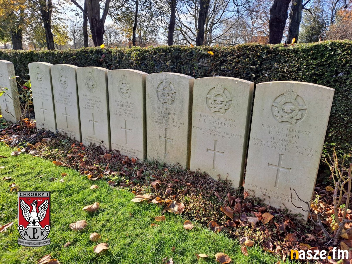23 listopada, w ostatni dzień naszego pobytu w Wielkiej Brytanii, udaliśmy się na cmentarz polskich lotników w Newark. Jest to największy polski cmentarz lotniczy na świecie. Spoczywa na nim 351 członków personelu Polskich Sił Powietrznych. Na cmentarzu spoczywają również żołnierze Brytyjskiej Wspólnoty Narodów. Liczne polskie groby, już nieco późniejsze, rozsiane są również wokół cmentarza lotników. Jeżeli dotrzemy do Newark koleją to na miejsce wiedzie prosta droga. Po wyjściu ze stacji Newark Northgate należy przejść ulicą Appleton Gate, skręcić w Queens Road oraz dalej prosto Friary Road i Sherwood Ave. Skręcamy w ulicę Balderton Gate i po krótkim spacerze znaki wskazują nam cmentarną bramę. Po przejściu głównej alei w końcowej części nekropolii odnajdziemy interesujące nas miejsce. Nie sposób je pomylić, ponieważ otoczone jest niskim żywopłotem. Na cmentarzu pochowano również m.in. ofiary katastrofy gibraltarskiej, spadochroniarzy Samodzielnej Brygady Spadochronowej. Znaczna część mogił lotniczych to polegli z dywizjonów bombowych 300 "Ziemi Mazowieckiej", 301 "Ziemi Pomorskiej", 304 "Ziemi Śląskiej" oraz 305 "Ziemi Wielkopolskiej". Spoczywa tutaj również wielu lotników, którzy stracili życie w katastrofach w jednostkach szkoleniowych i pomocniczych. Wśród nich jest por. pil. Jerzy Kisielewicz oraz sześciu towarzyszy jego ostatniego lotu odbytego 21 listopada 1944 r. Ich nagrobki odnajdziemy w ostatnich rzędach od strony południowej cmentarza.