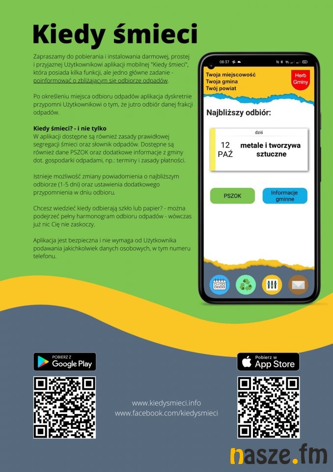 W celu ułatwienia mieszkańcom gminy Zapolice dostępu do informacji na temat odpadów komunalnych, uruchomiona została darmowa aplikacja "Kiedy śmieci". Mieszkańcy mogą ją ściągać na swoje smartfony z systemami Android i iOS.