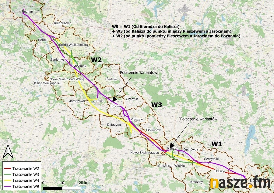 - Spółka CPK wprowadziła do analiz Etapu II STEŚ wariant hybrydowy oznaczony dla uniknięcia niejasności nowym symbolem W9, który jest kompilacją przebiegu wariantu W1 do rejonu Kalisza, W3 od Kalisza do Kotlina i W2 od Kotlina do Poznania. Wobec tego, w analizie wielokryterialnej trasowanie W1 zostało zastąpione trasowaniem W9 i to ono jest skierowane do dalszej analizy wraz z przebiegami W2, W3 i W4 celem wybrania wariantu inwestorskiego w I kwartale 2023 r. - przekazuje dalej CPK.
