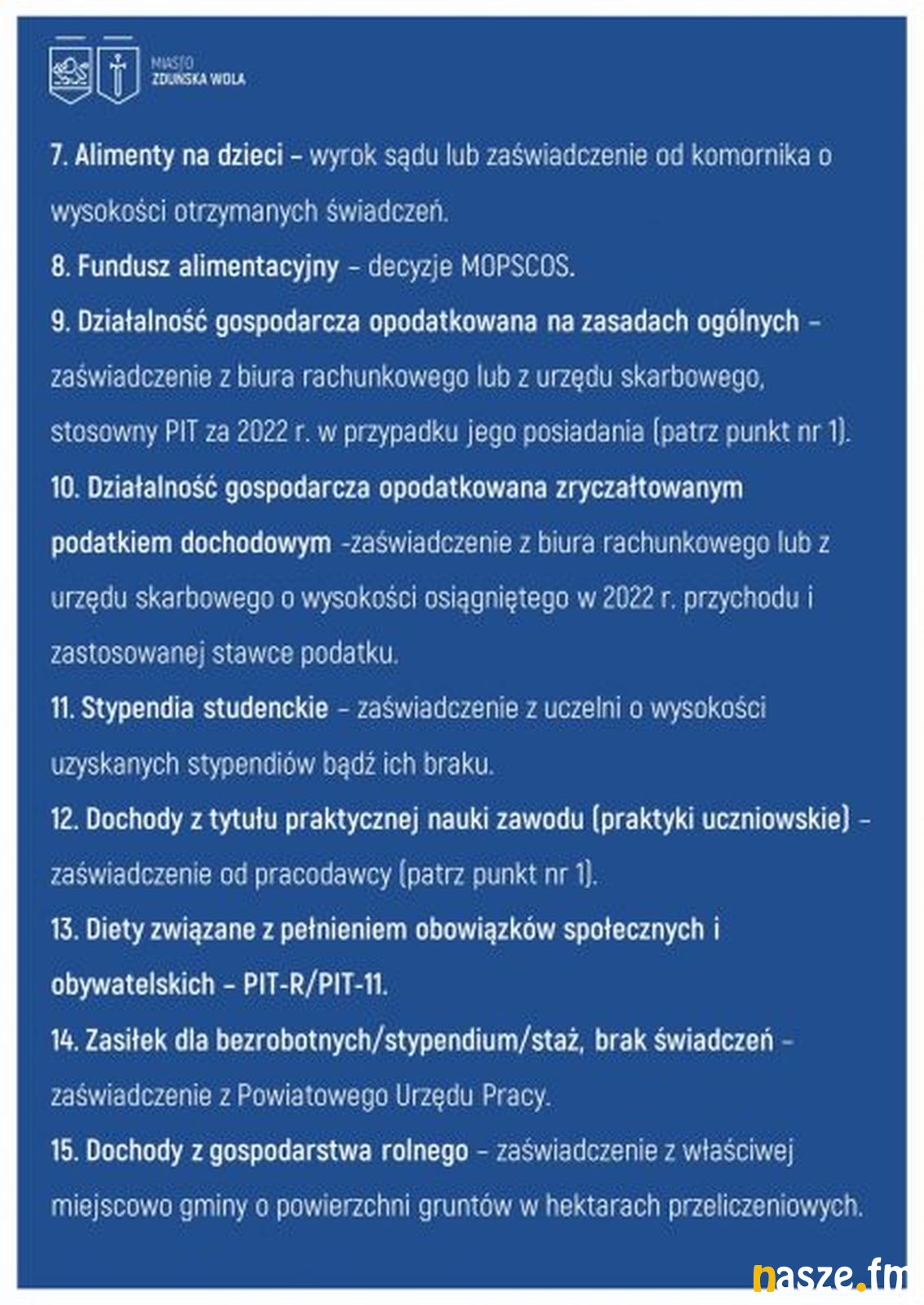 - Dokumenty potwierdzające dochody członków gospodarstwa domowego za 2022 r.