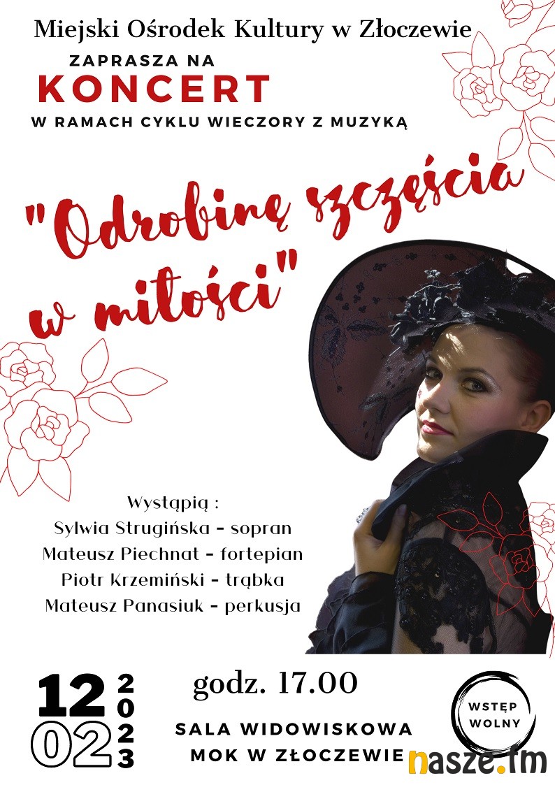W niedzielę w Miejskim Ośrodku Kultury w Złoczewie odbędzie się koncert "Odrobinę szczęścia w miłości". - Zabrzmią piosenki o różnych odcieniach miłości - zapowiadają organizatorzy.