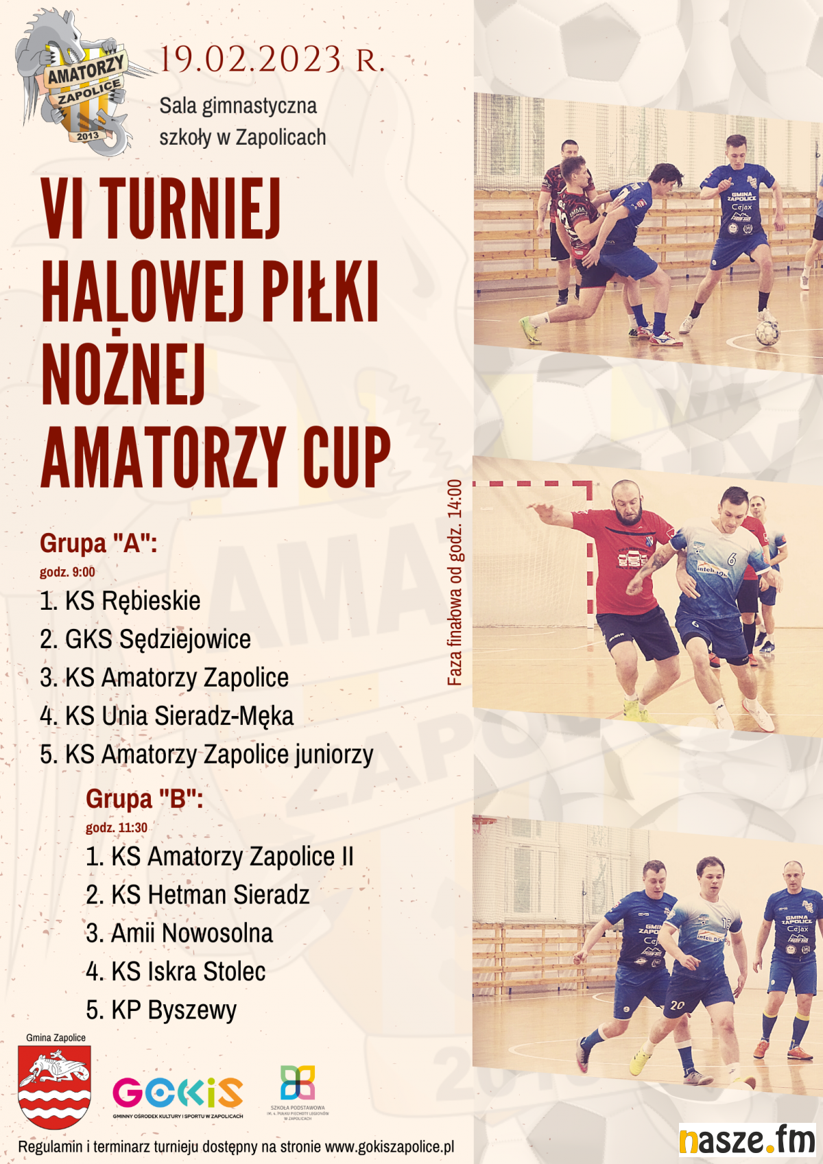GOKiS Zapolice zaprasza na VI Turniej Halowej Piłki Nożnej Amatorzy Cup. Zawody odbędą się jutro w sali gimnastycznej szkoły w Zapolicach.