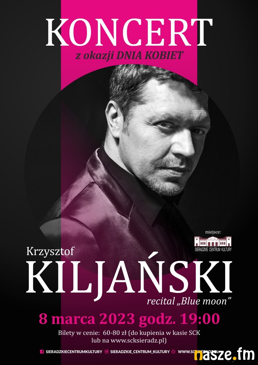 Koncert wokalisty zaplanowano z okazji Dnia Kobiet i właśnie 8 marca Krzysztof Kiljański wystąpi w Teatrze Miejskim w Sieradzu. Jego recital "Blue moon", który usłyszy publiczność, to standardy światowej i polskiej muzyki rozrywkowej.