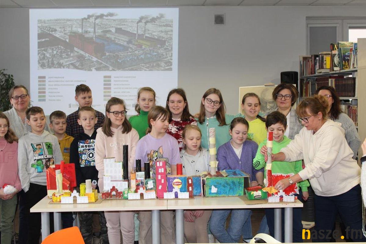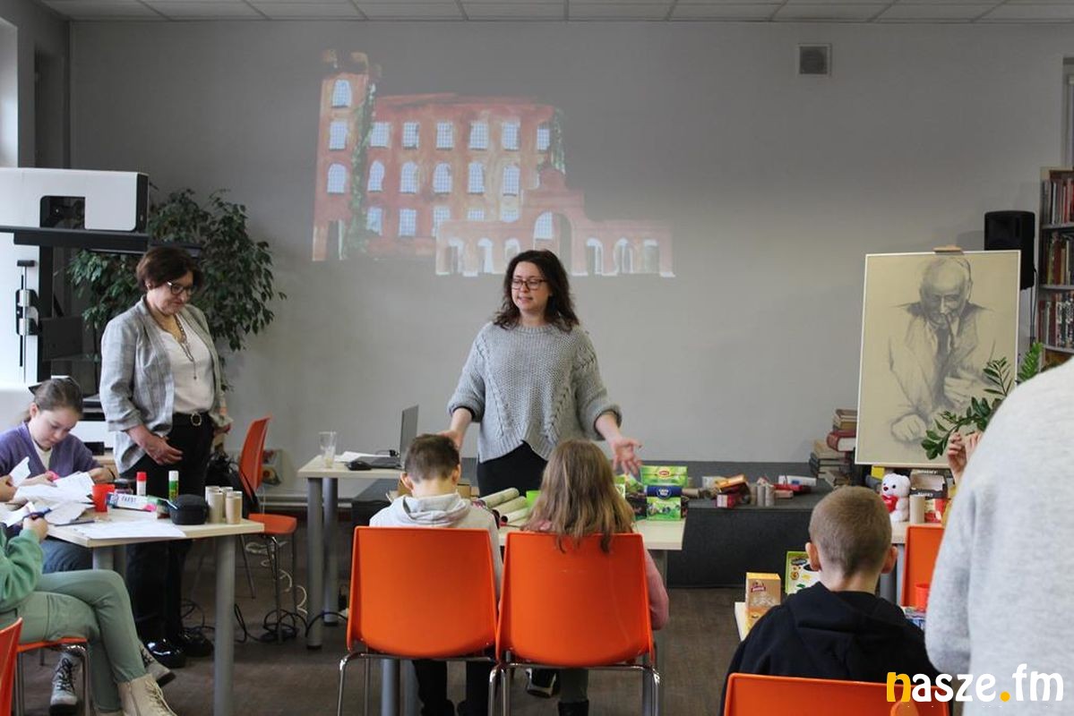 Dzisiaj w Miejskiej Bibliotece Publicznej odbyły się wykład i warsztaty plastyczne dla uczniów klasy 4 pod hasłem "Architektura fabryczna".