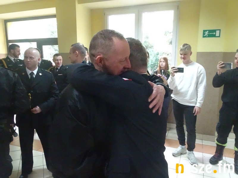 Po uroczystej zbiórce, już na "spocznij", strażacy składali byłemu od dziś dowódcy JRG liczne podziękowania za lata wspólnej służby. Życzenia pomyślności i sukcesów w służbie odbierał też następca D. Rudeckiergo.